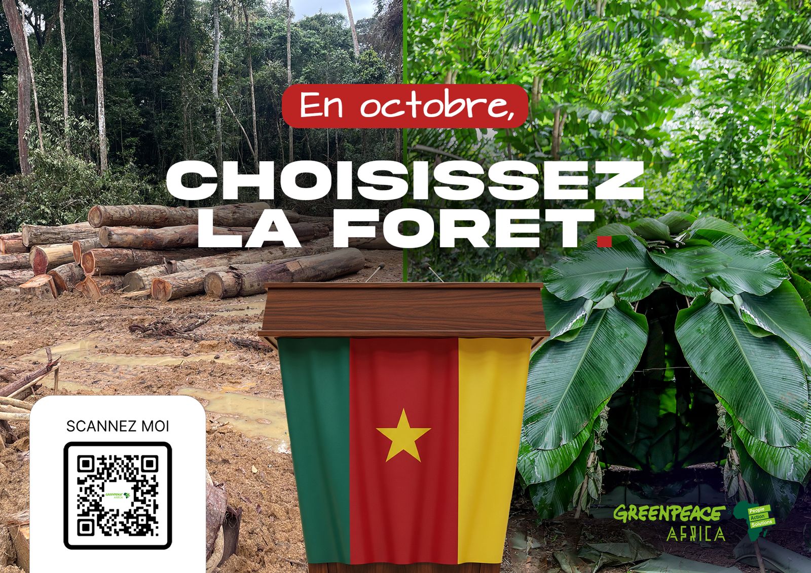 Cameroon is at a crossroads with the climate crisis. “We want candidates who want to lead our nation to take tangible steps, not just make promises. Every political choice we make must safeguard our future, our communities, and our forest. We can only create a resilient, equitable, and sustainable Cameroon if we work together,” said Malvin Tankoh, Greenpeace Africa’s country coordinator